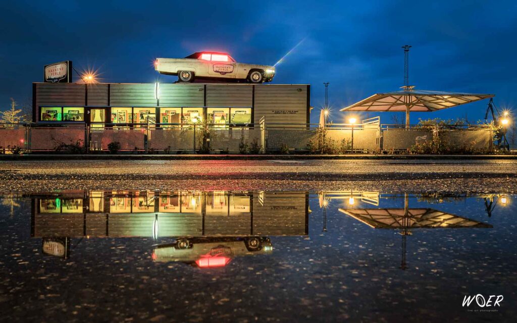 Et af mine mere populære fotografiske værker er uden tvivl ”Havnens Perle” fra 2024. Fotografiet blev taget dagen efter et stort regnskyl, hvor der var rig lejlighed til at tage spejlingsbilleder — som du nok kan se på denne hjemmeside — og spejlinger er en af mine laster.